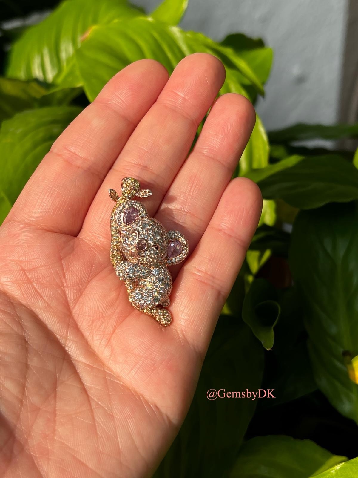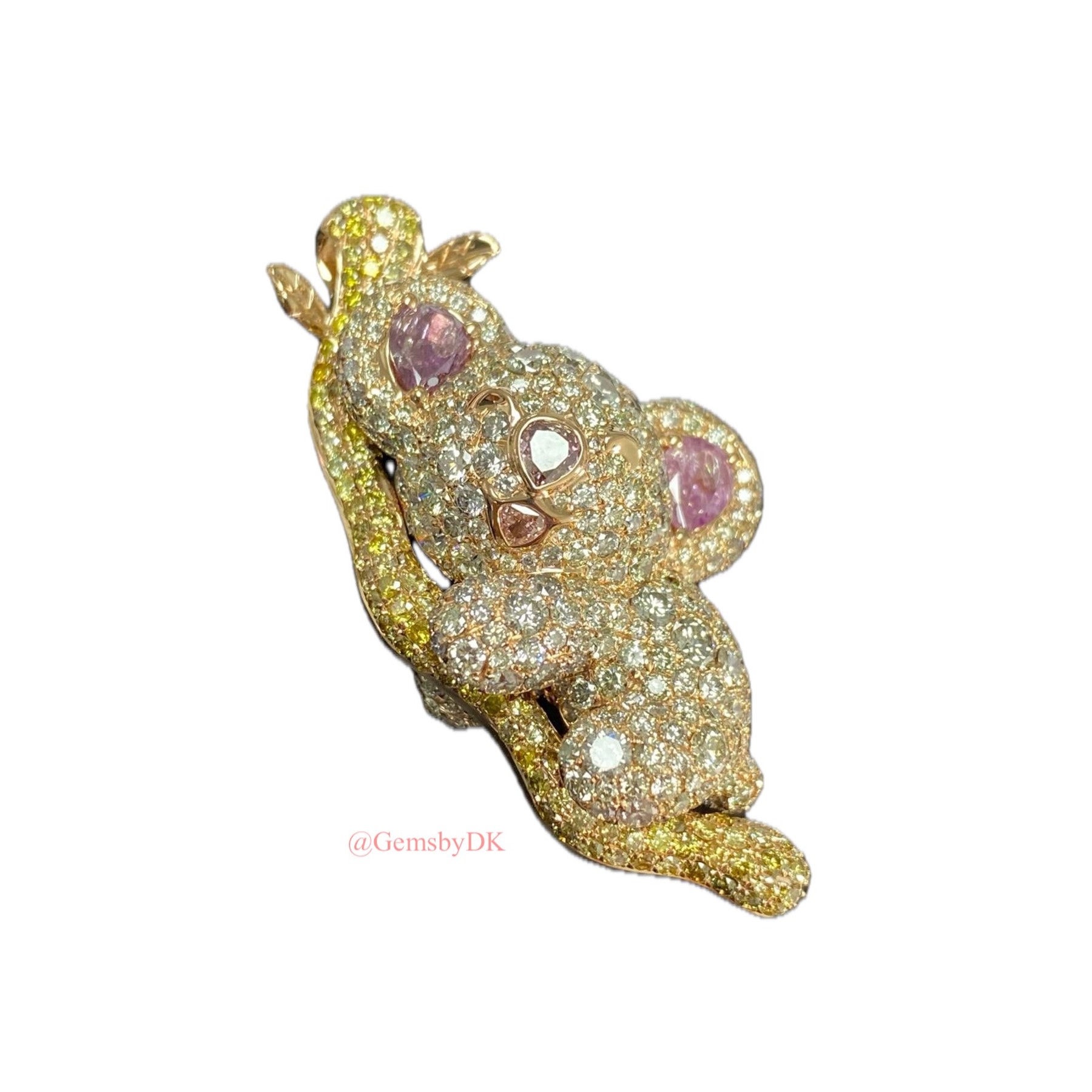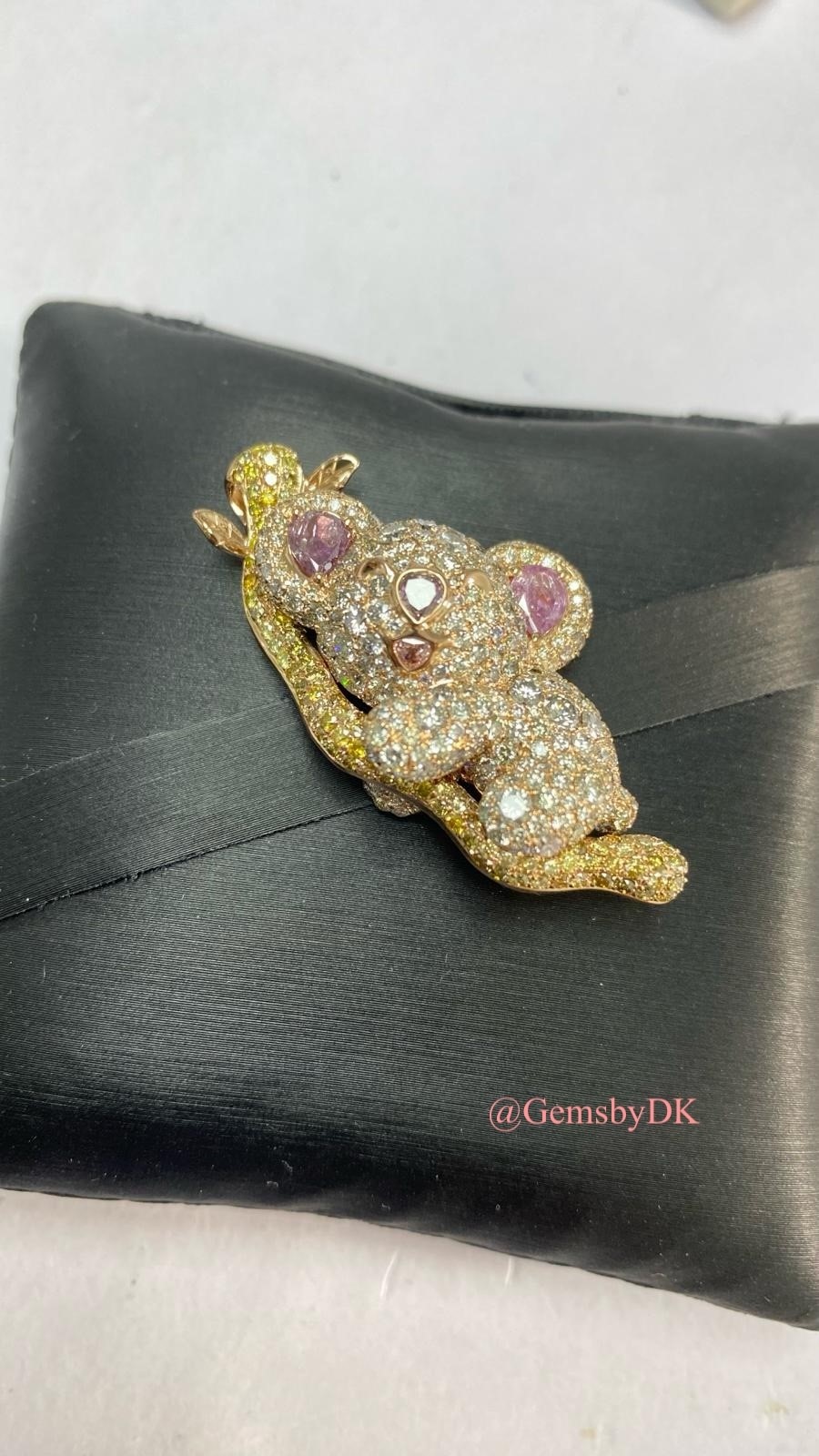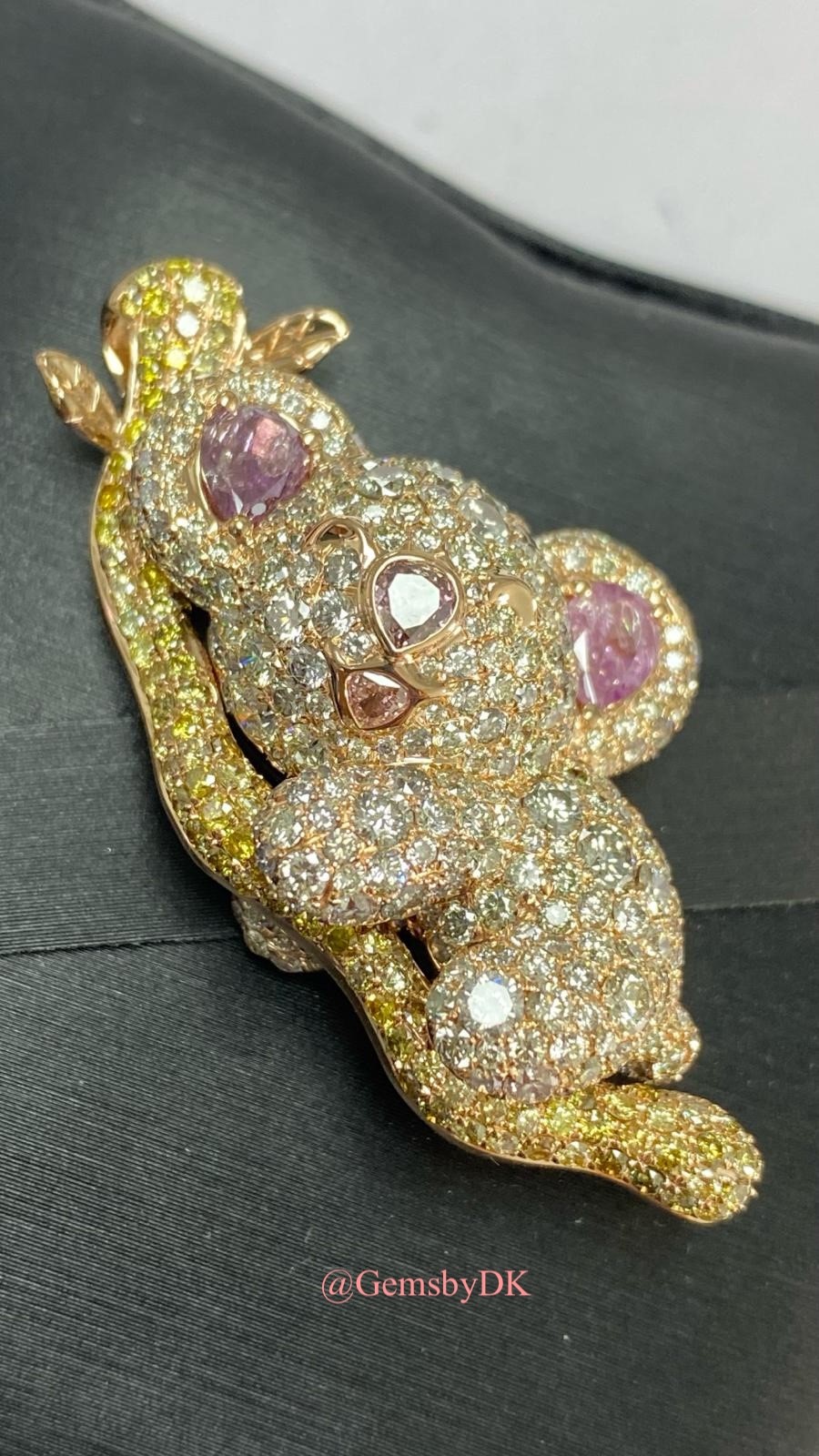 18K Natural Fancy Color Diamond Koala Bear Pendant