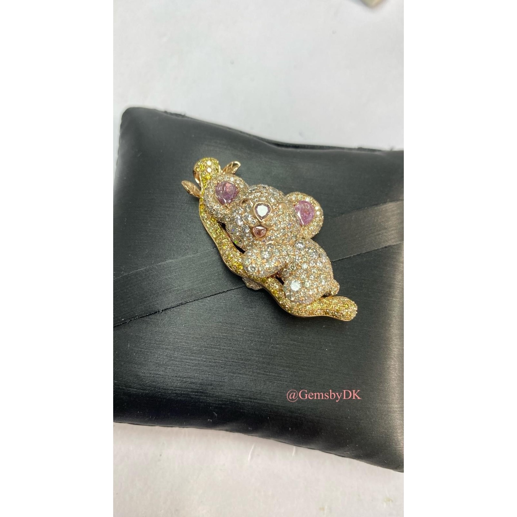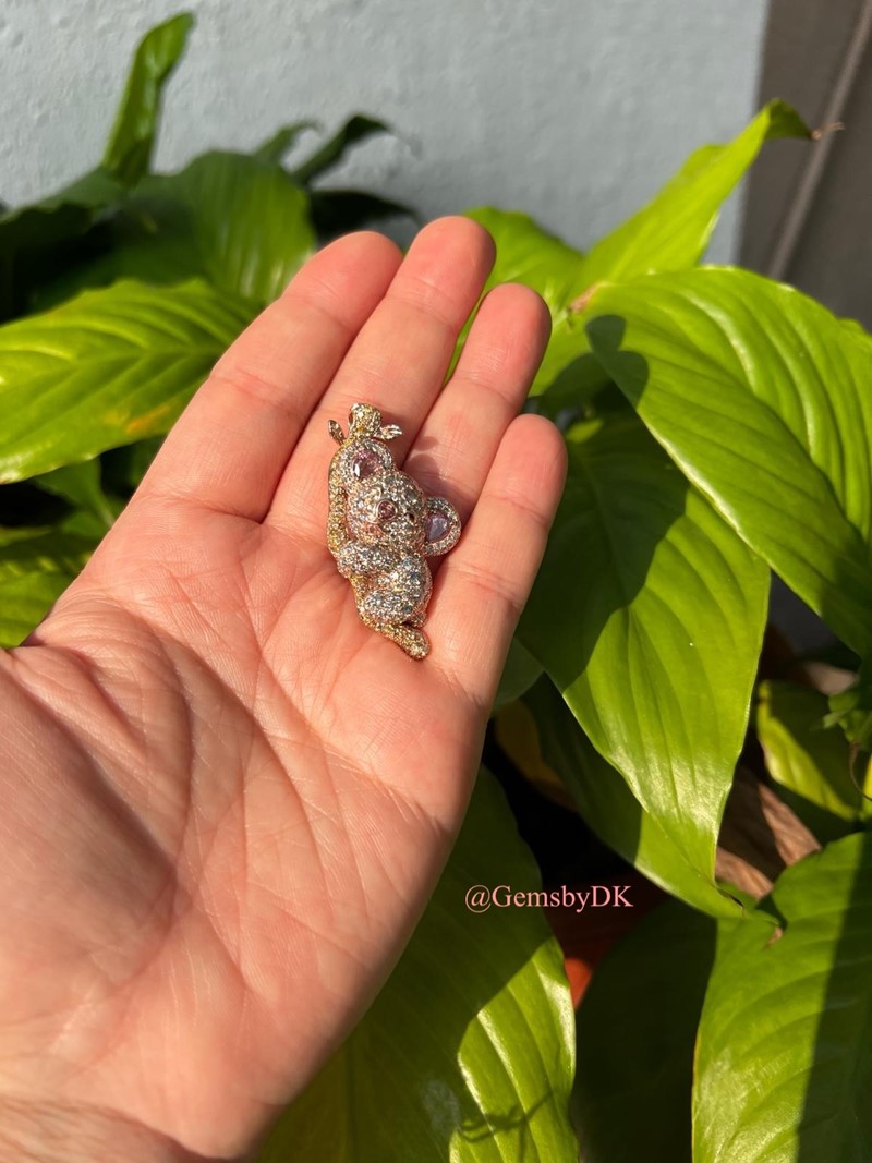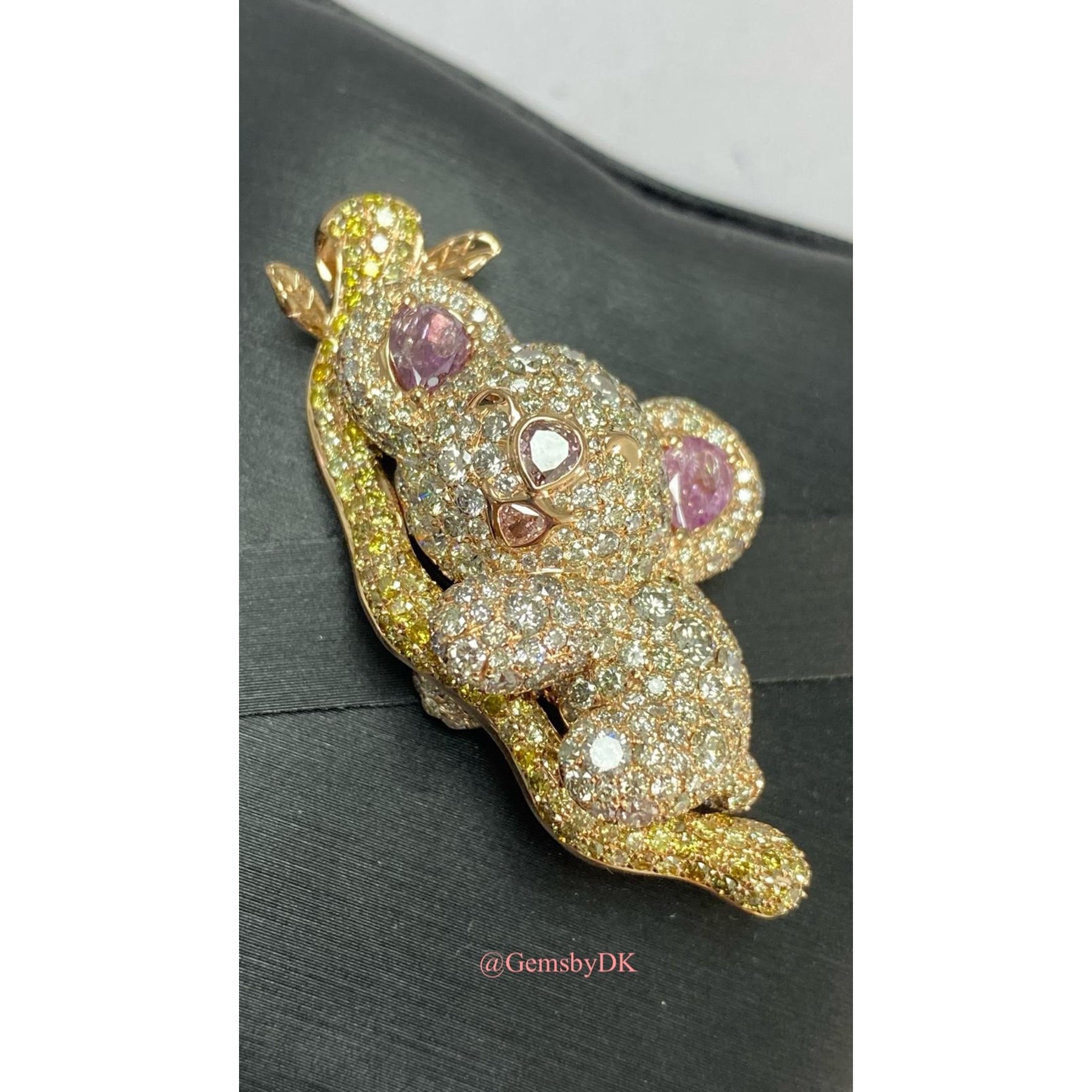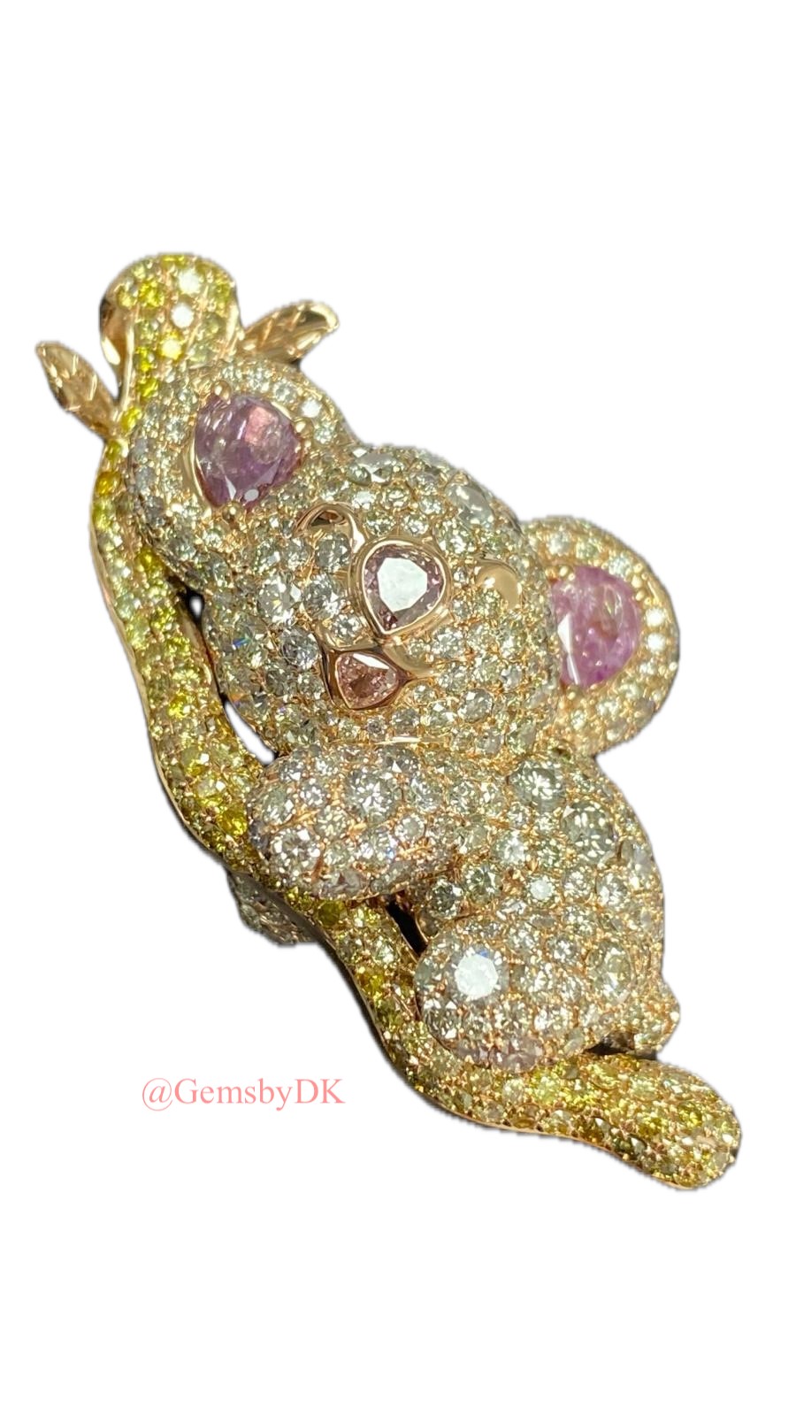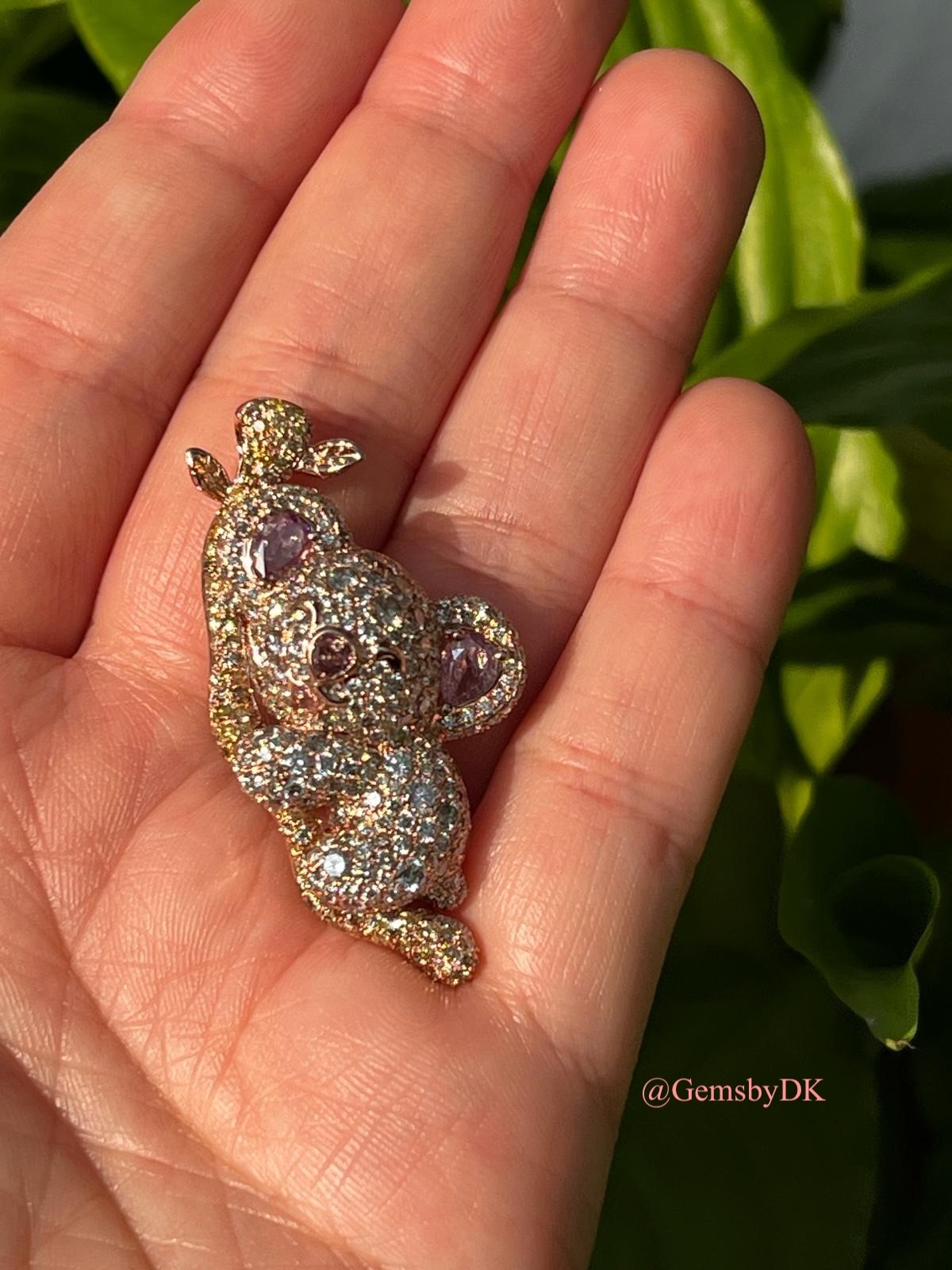 18K Natural Fancy Color Diamond Koala Bear Pendant