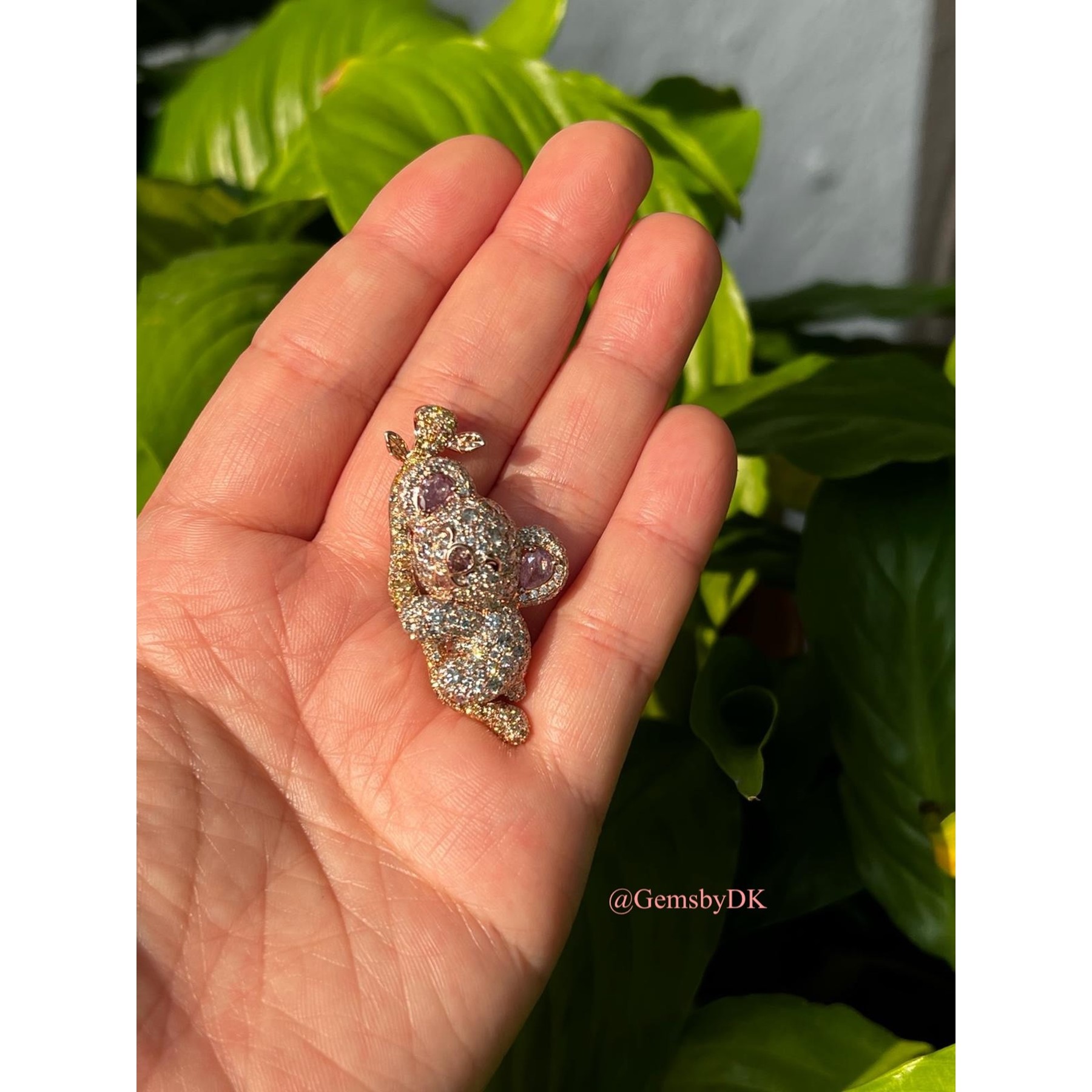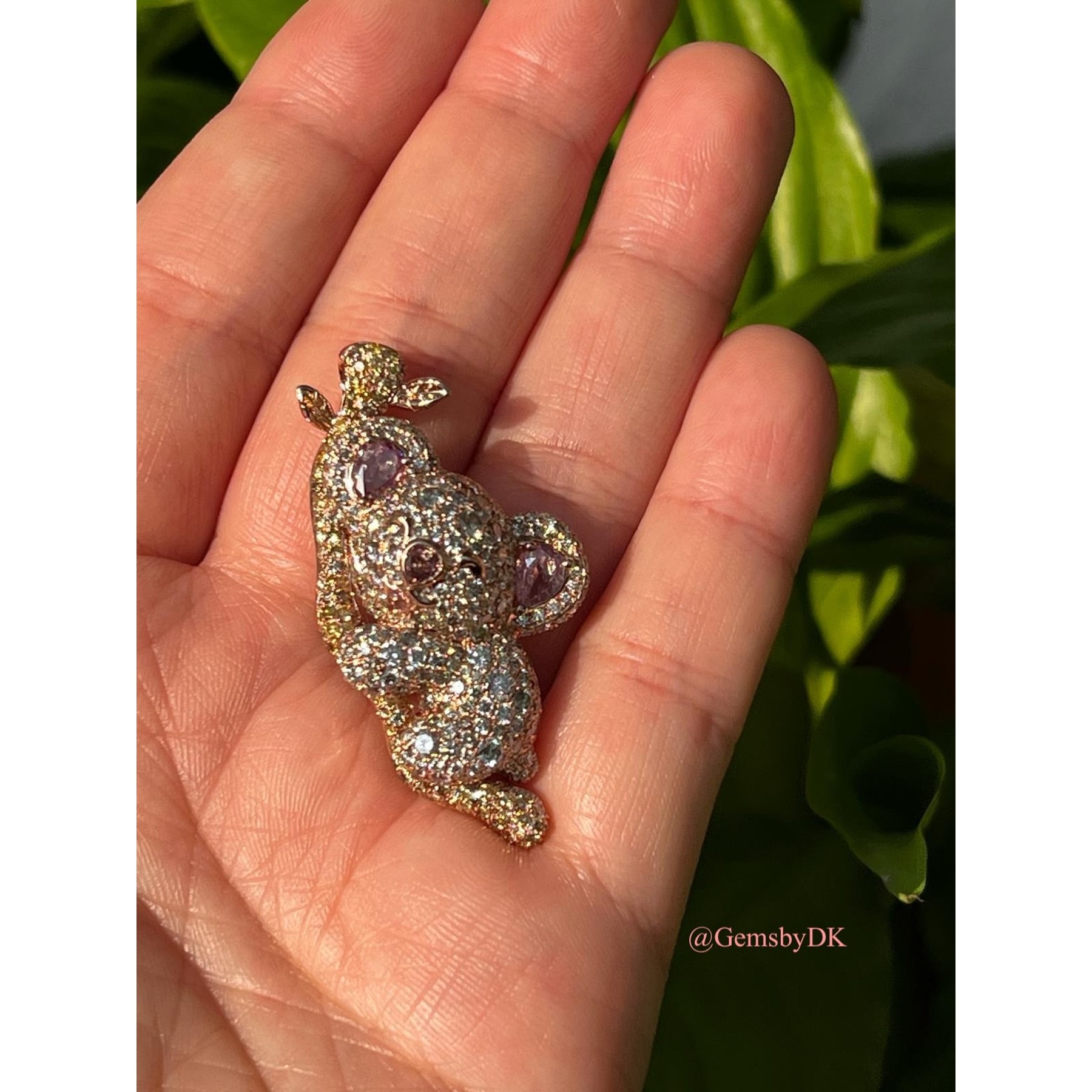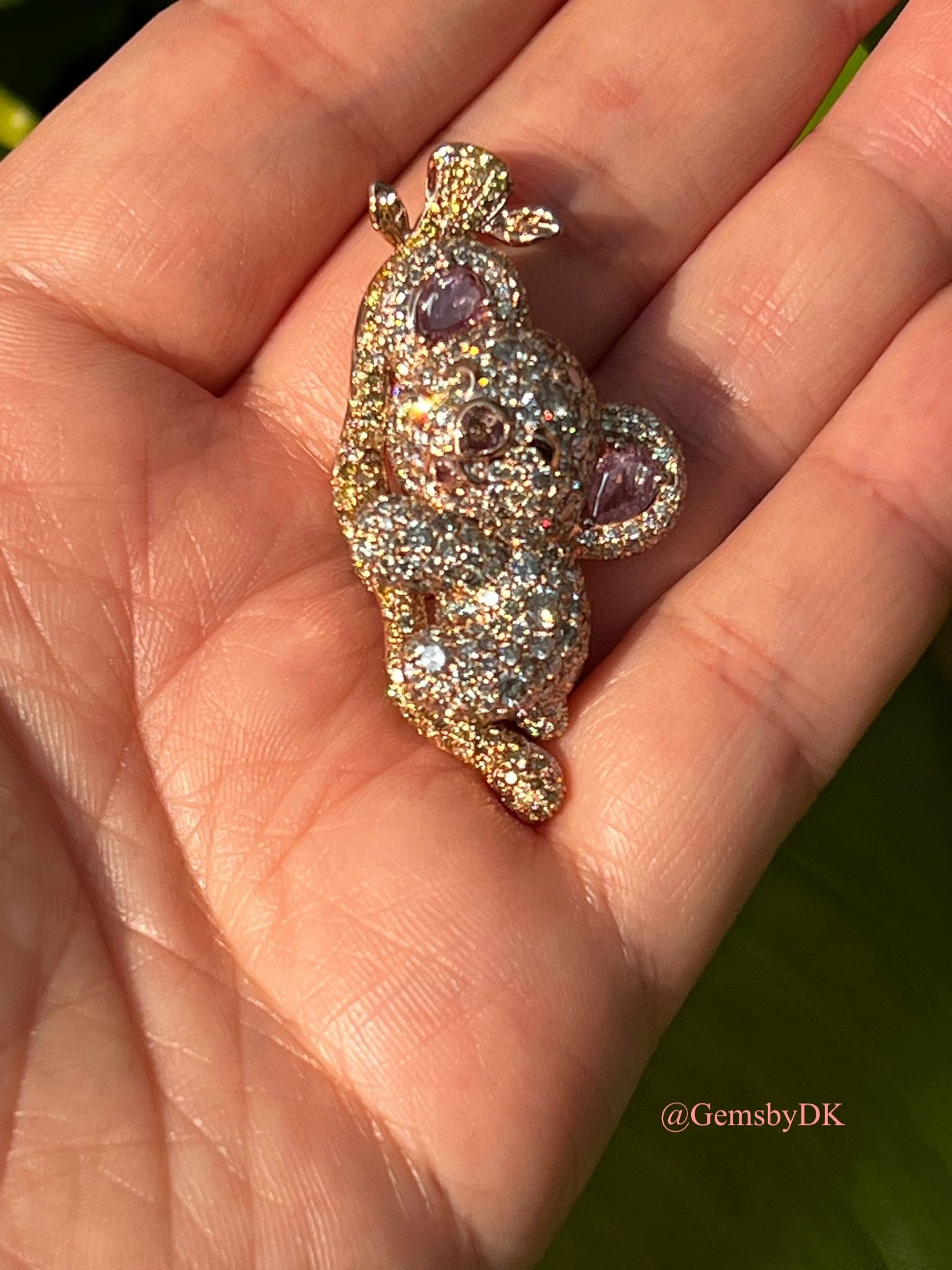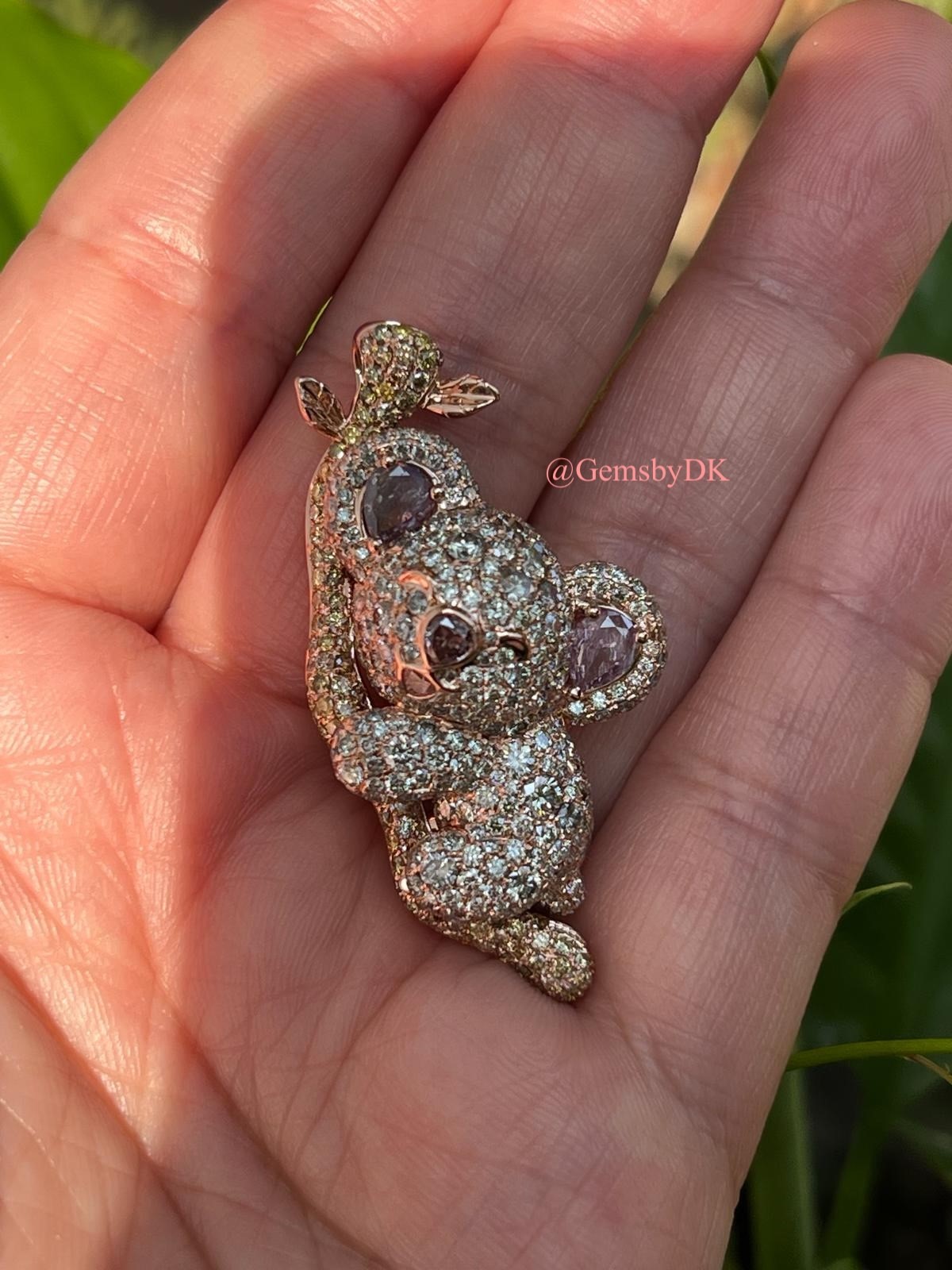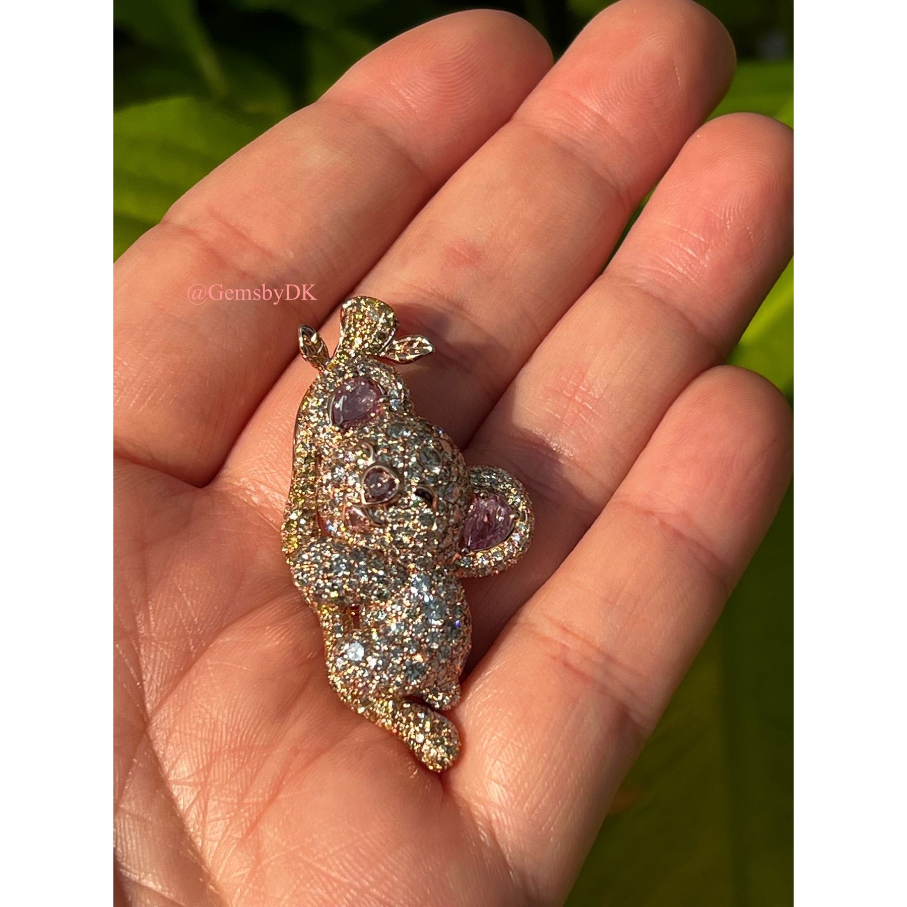 18K Natural Fancy Color Diamond Koala Bear Pendant