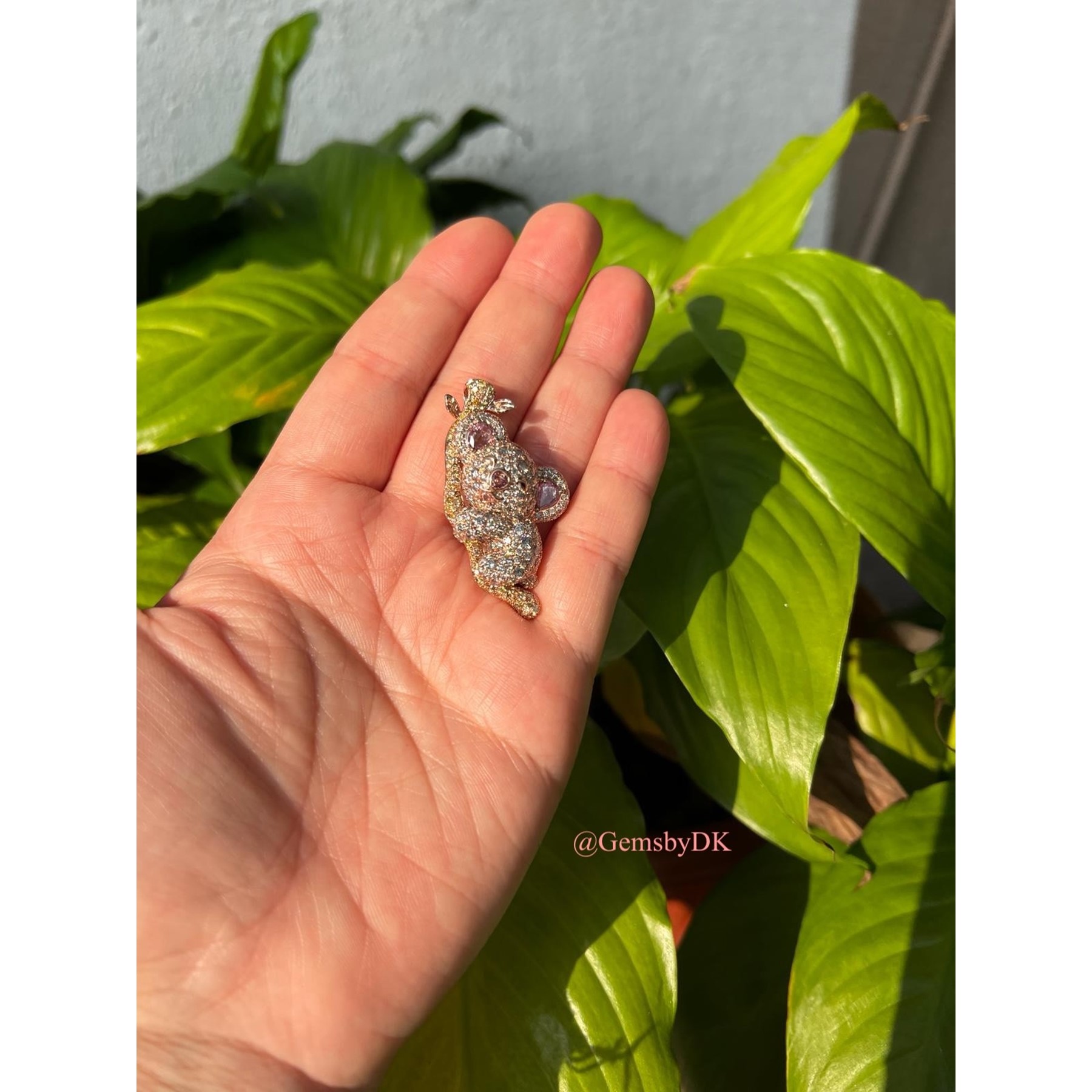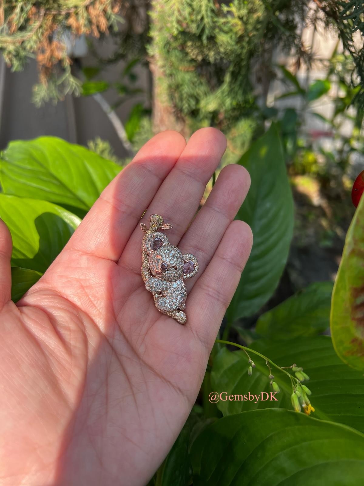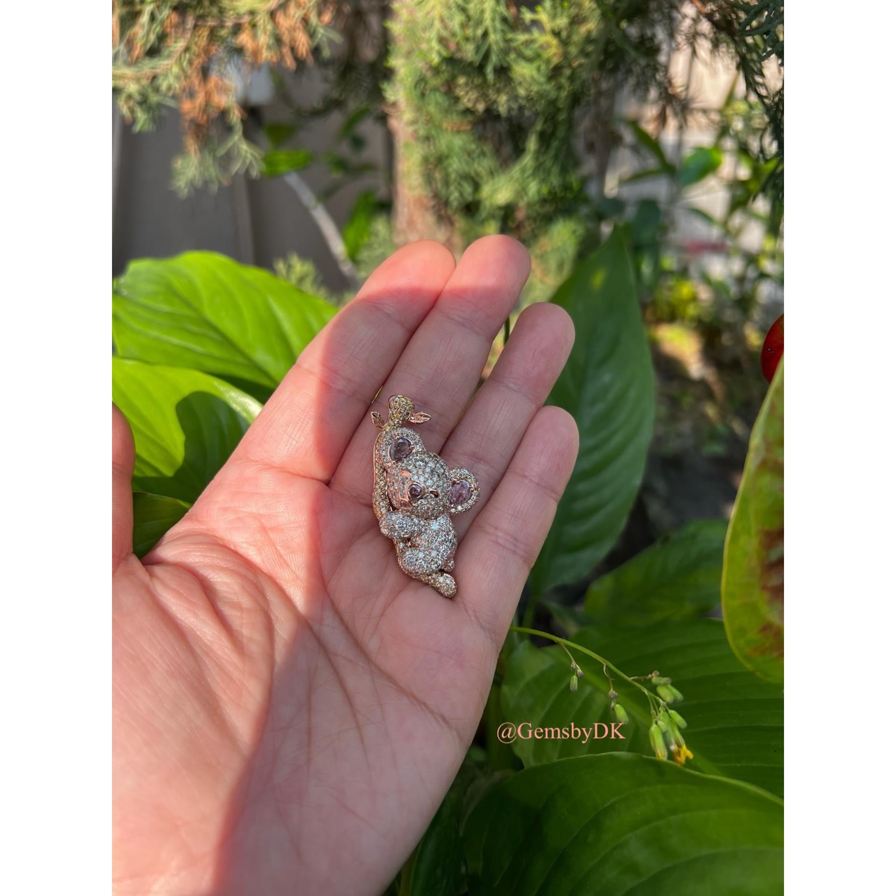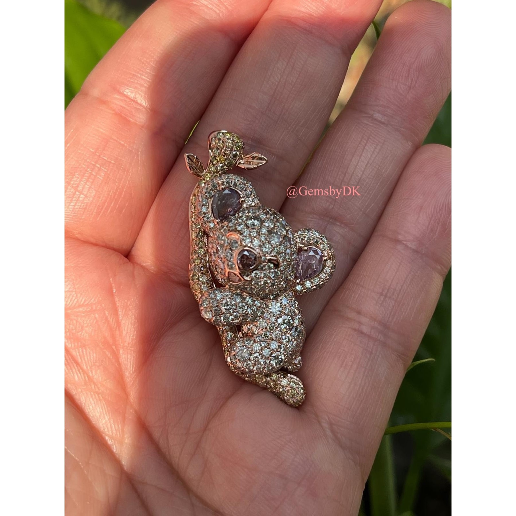 18K Natural Fancy Color Diamond Koala Bear Pendant