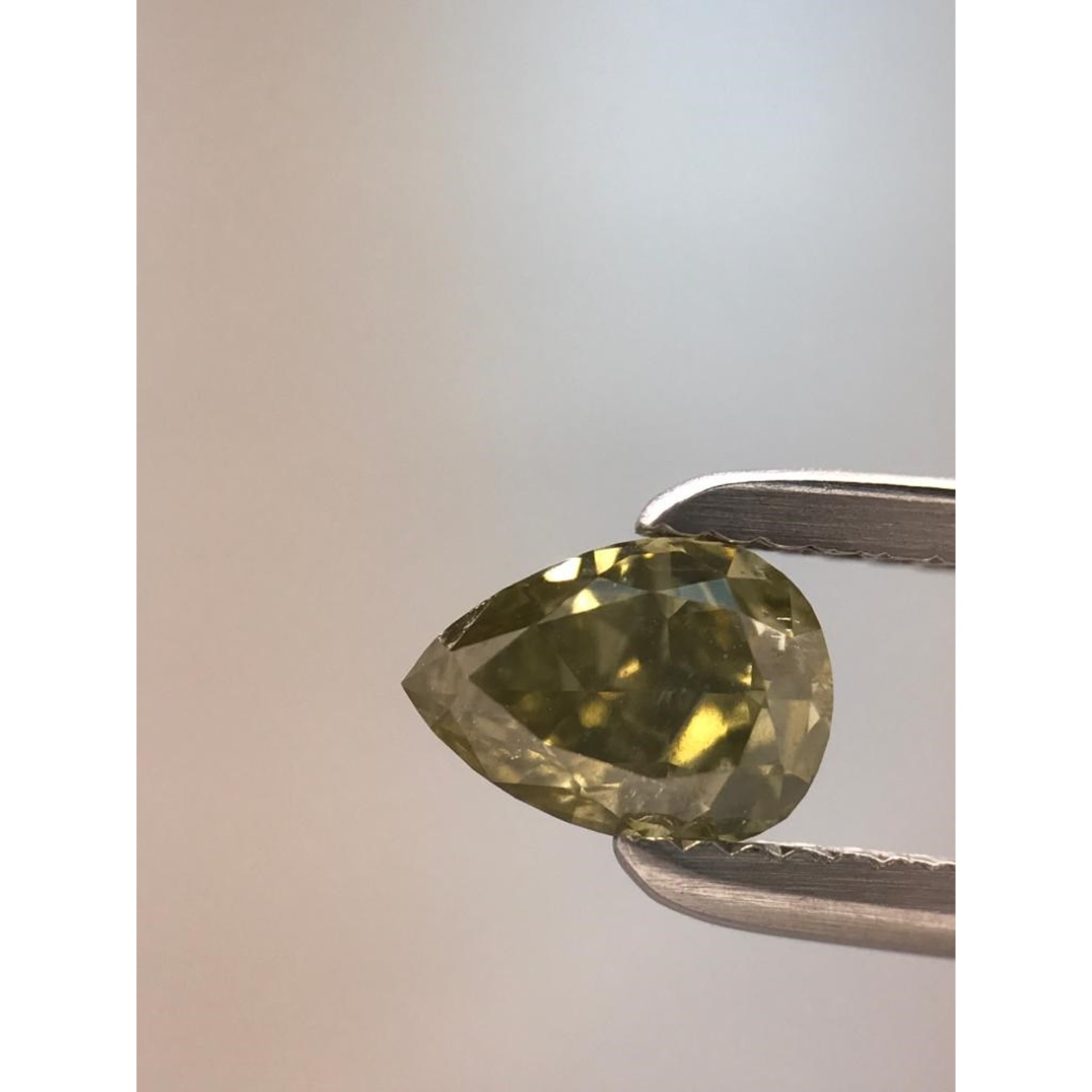 GIA- Chameleon: Fancy Dark Gray-Yellowish GREEN Pear Shape Diamond 0.66 Carat
