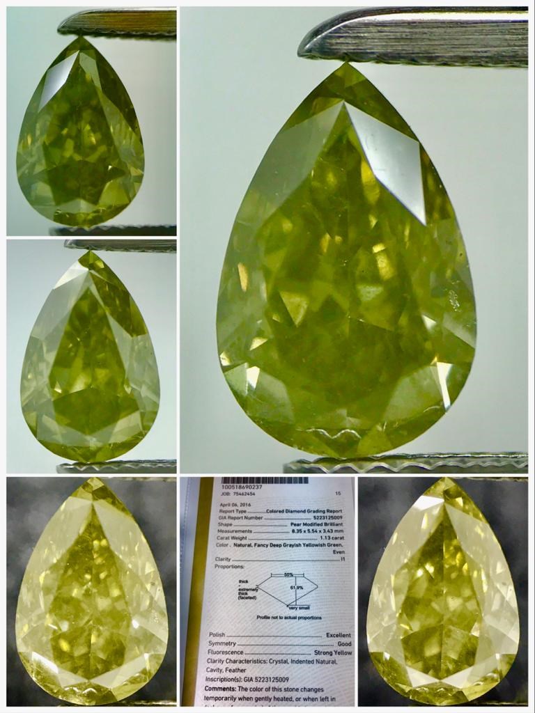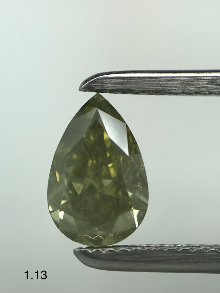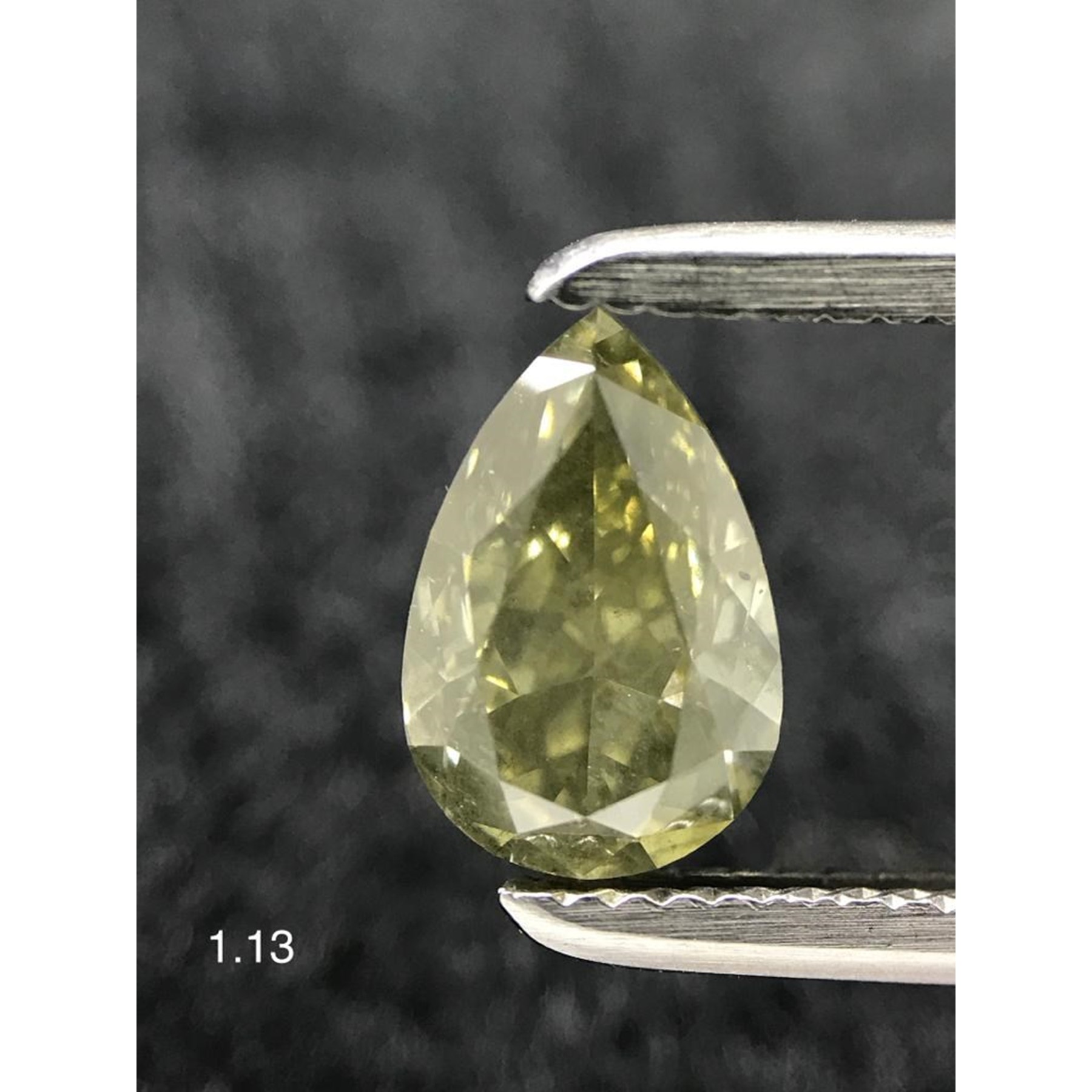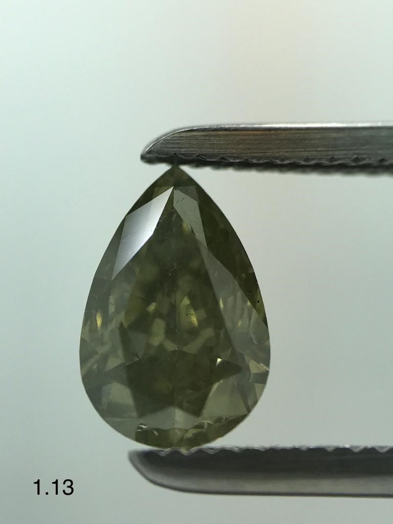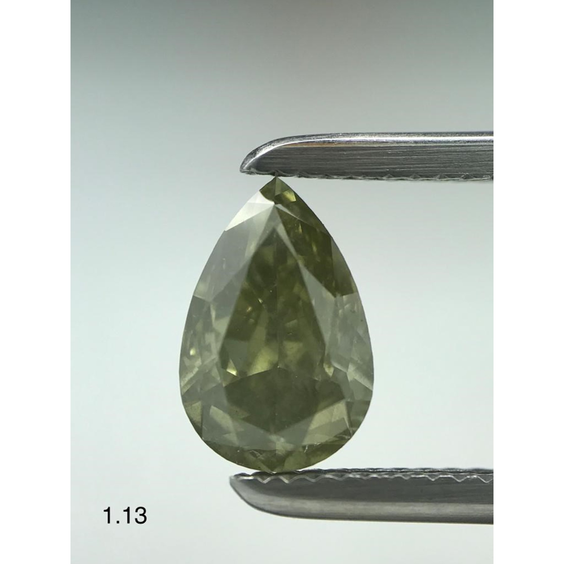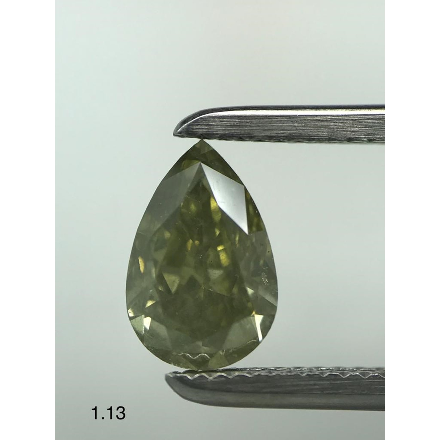 GIA- Chameleon : Fancy Deep Grayish Yellowish GREEN Pear Shape Diamond 1.13 Carat