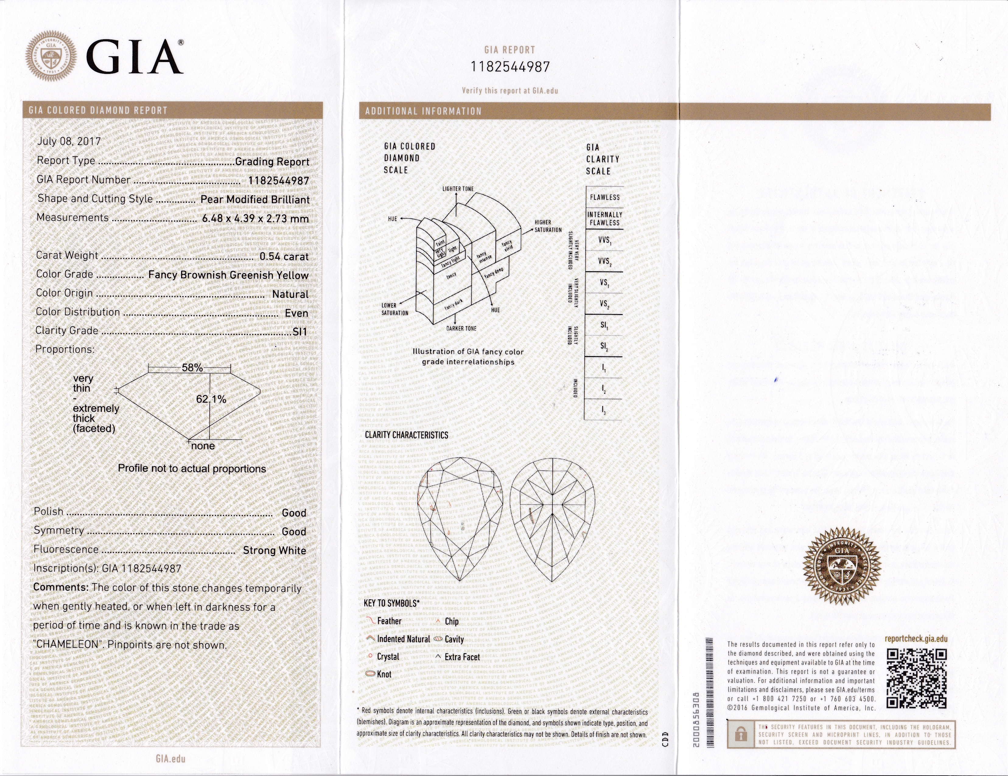GIA- Chameleon: Fancy Brownish Greenish Yellow Pear Shape Diamond 0.54 Carat (Color Change)