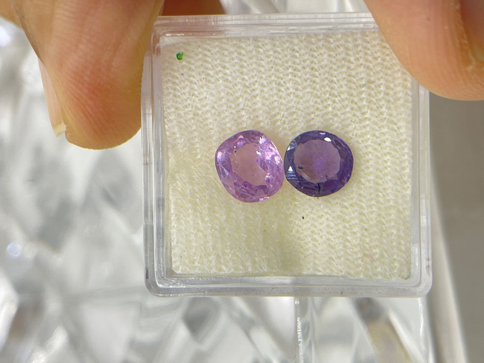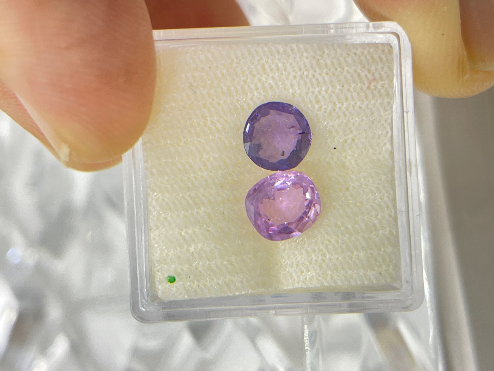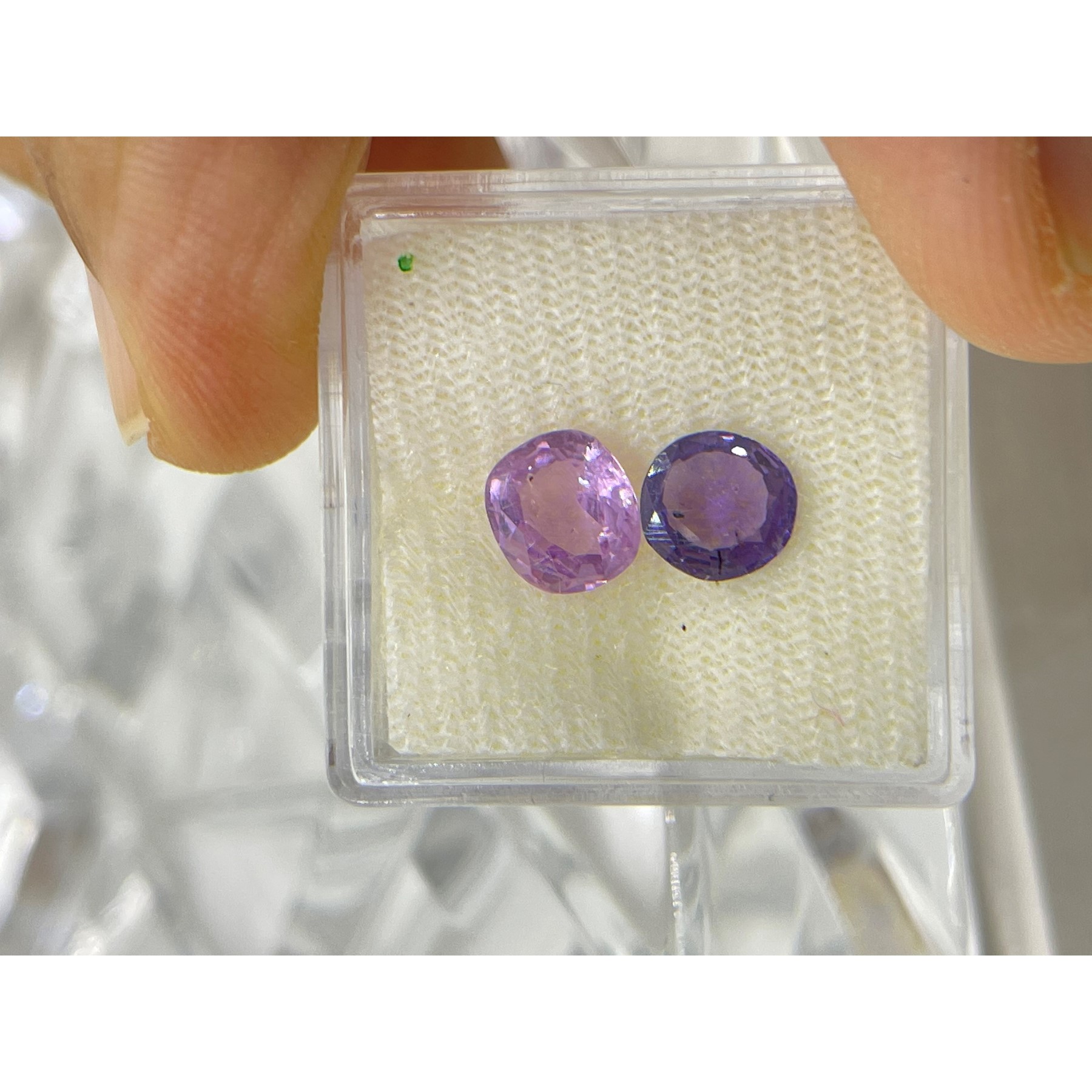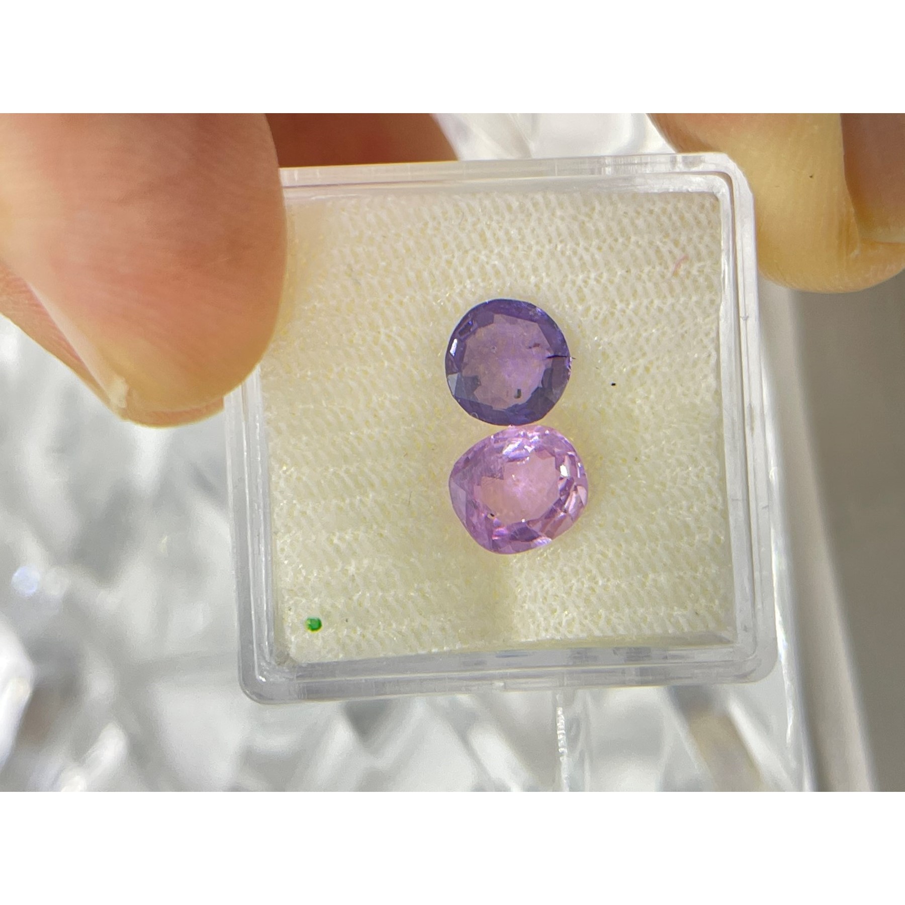 Pink Color Cushion Shape + Violet Color Round Shape Sapphire F/C 2pcs-2.46 cts