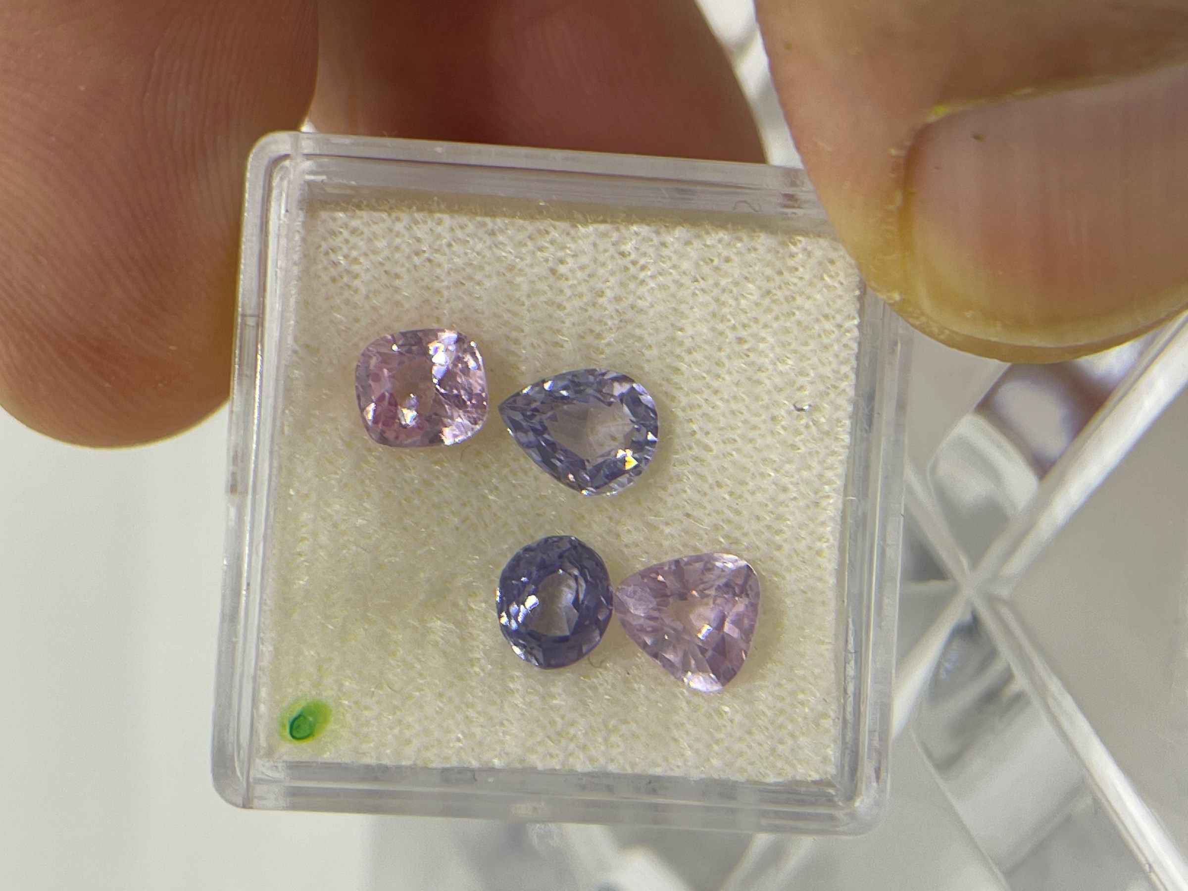 Pink+Blue Color Tri+Cushion+Pear+Oval Shape Sapphire F/C (4pcs-3.25 cts)