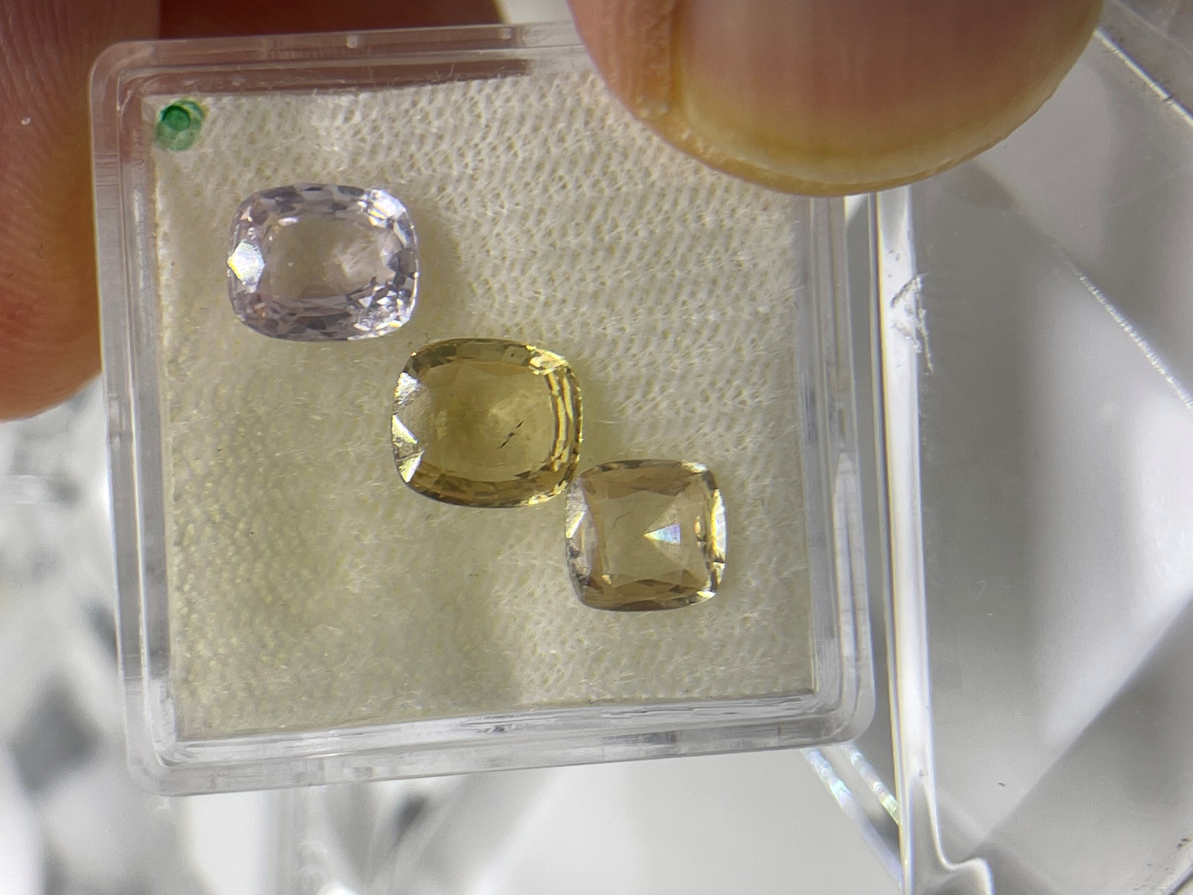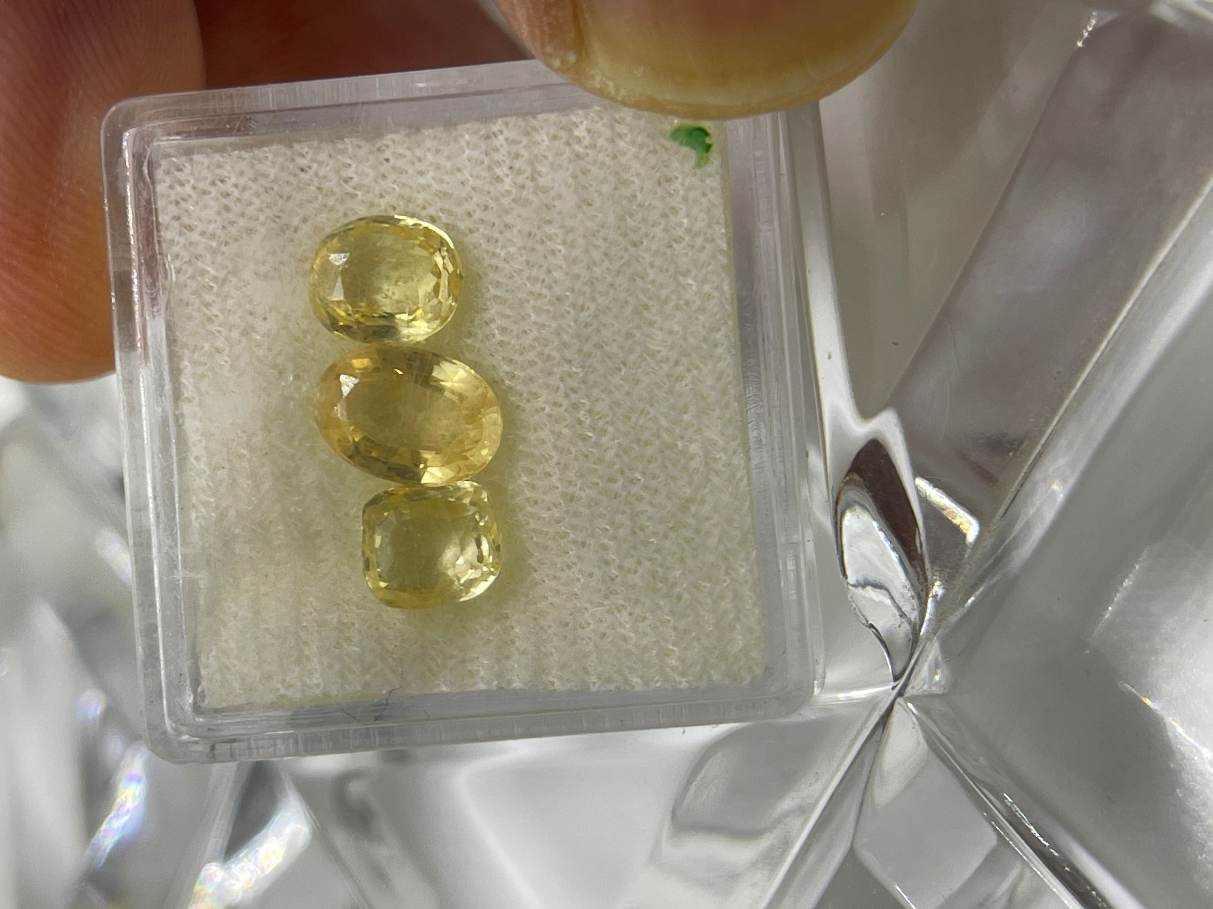 Yellow Color Oval+Cushion Shape Sapphire F/C (3pcs-3.720cts)