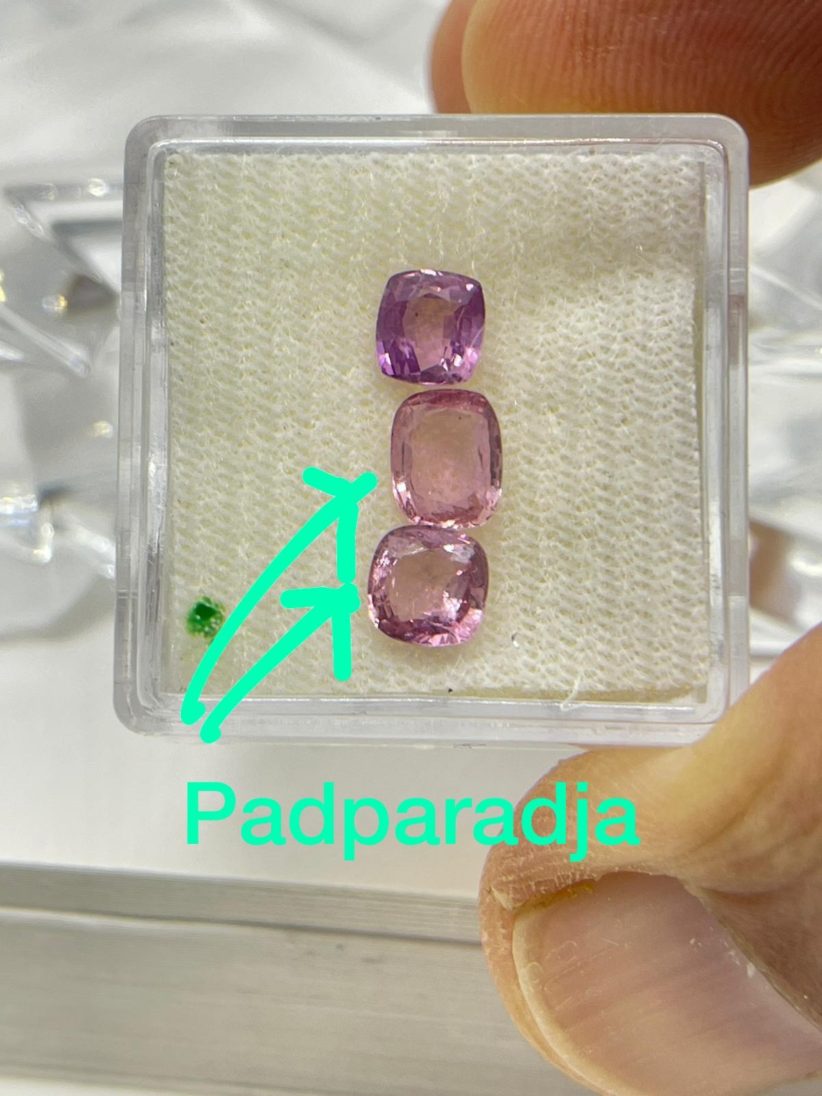 (Padparadja) Pink Color Square Cushion Shape Sapphire R/C (3pcs-2.310cts)