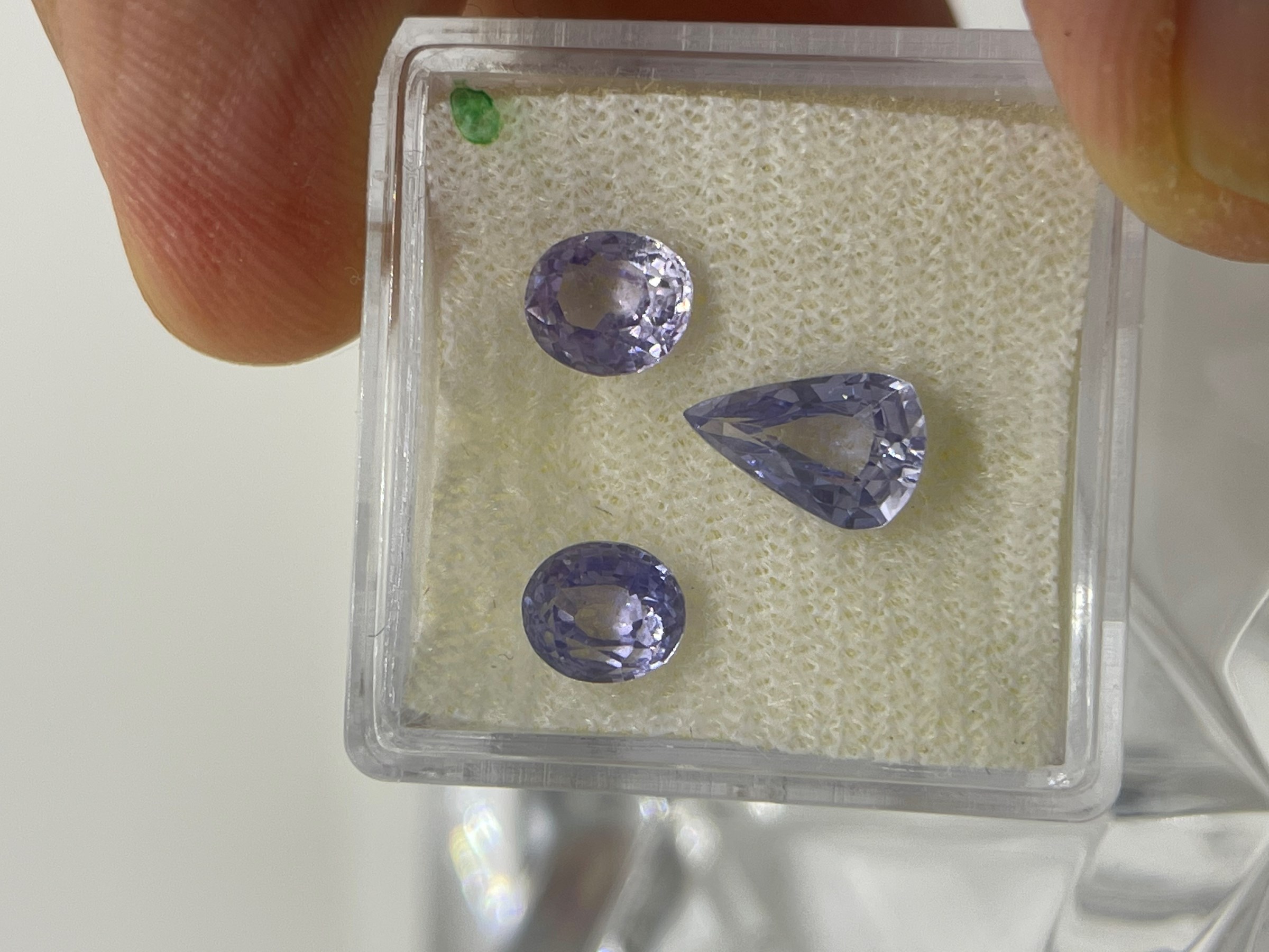 Light Violet Oval+Pear Shape Sapphire F/C 3pcs-3.29 cts