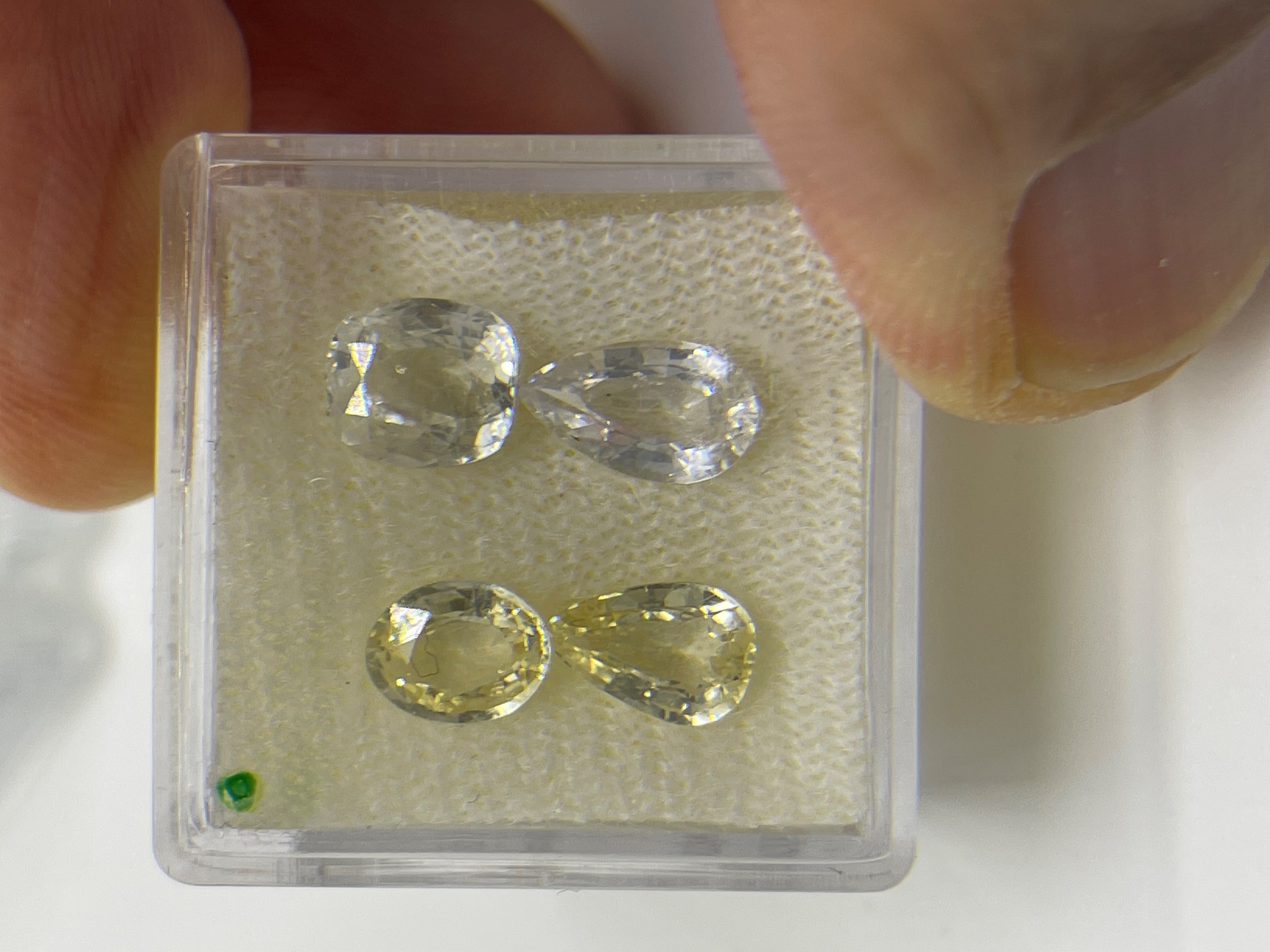 Yellow+White Color Pear+Oval Shape Sapphire F/C (4pcs-4.680cts)