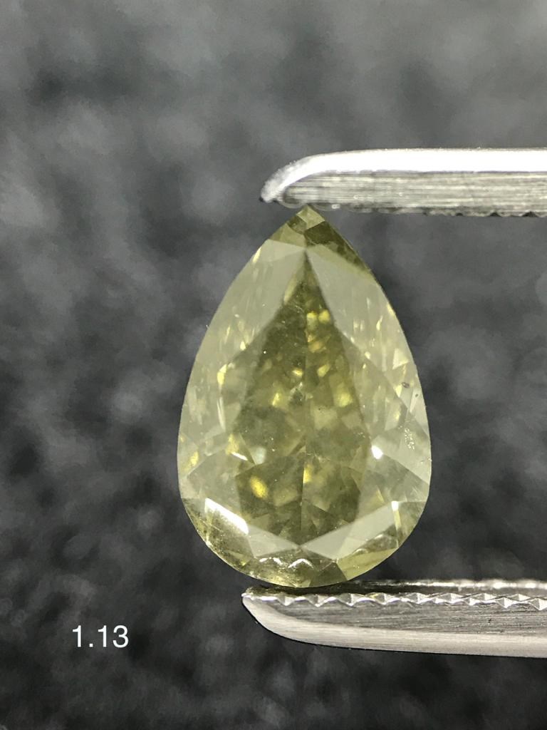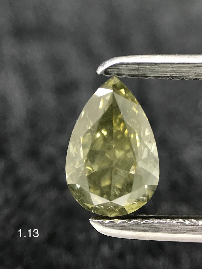 GIA- Chameleon : Fancy Deep Grayish Yellowish GREEN Pear Shape Diamond 1.13 Carat (Color Change)